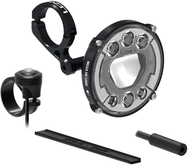 De Lezyne E-BIKE MEGA HB StVZO E2000 is een krachtige fietskoplamp, ontworpen voor maximale zichtbaarheid en veiligheid tijdens het fietsen.