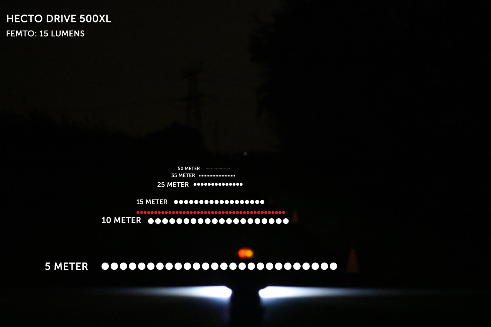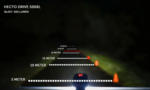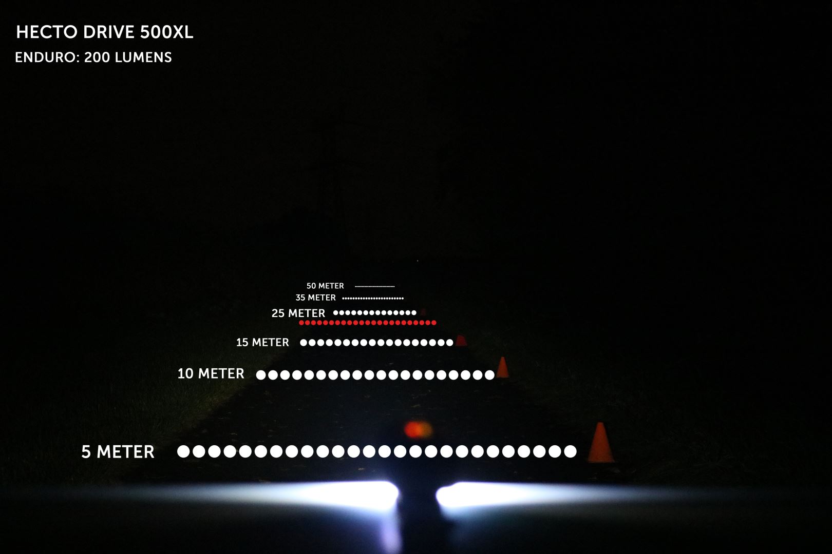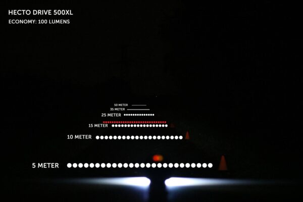 De Hecto Drive 500XL is een compacte en duurzame fietslamp. De lamp is gemaakt van een speciale, bewerkte aluminium behuizing. Het ontwerp is met één ledlamp. Deze lamp heeft een output van 500 lumen. Ook heeft deze lamp acht verschillende standen met onder andere een speciale dagflitsmodus.