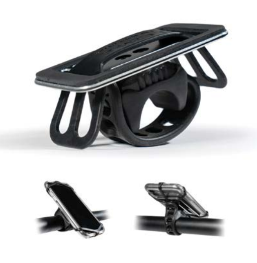 De Smart Grip Mount is een stevige telefoonhouder die op elke fiets kan worden gemonteerd. Het frame is gemaakt van bewerkt aluminium met daar omheen een zacht laagje antislipmateriaal.